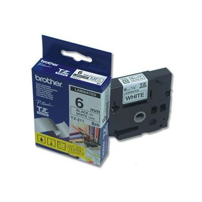 Originálna kazeta s páskou Brother TZe-211 - čierna tlač na biele, šírka 6 mm Originálna kazeta s laminovanou páskou TZe-231 kompatibilná so širokou radou tlačiarní Brother P-touch je obzvlášť všestranná vďaka svojej ľahko čitateľnej čiernej a bielej farbe - ideálna pre domácnosť, kanceláriu a ďalšie pracoviská. Vlastnosti: *Šírka 6 mm, dĺžka 8 m *Vysoko kvalitná originálna kazeta Brother *Garancia trvanlivosti, ľahká čitateľnosť štítkov