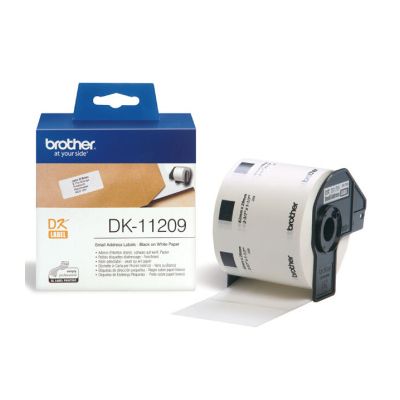 Originálna rolka štítkov DK-11209 - čierna tlač na bielom podklade, štítky 29 mm x 62 mm Originálne štítky Brother DK-11209 s černým tlačou na bielom podklade sú vhodné pre širokú škálu všeobecných požiadaviek na značenie. Na využitie v domácom i kanceláriskom prostredí môžu byť tieto samostatné malé adresné štítky na rolke použité na tlač log, čárových kódov, kariet návštevníkov alebo informácií o preprave. Vlastnosti: *800 štítkov na rolke, 29 mm x 62 mm *Vysoko kvalitné originálne role štítkov Brother *Zaistenie prehľadnosti, dlhá životnosť