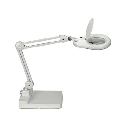 Silné a stabilné lampy a lupy v jednom v energeticky úspornej triede „A+“ (spektrá A++ - E) s najmodernejšou LED technológiou, elegantne navrhnutou hlavicou s dlhou životnosťou LED žiaroviek so svietivosťou denného bieleho svetla 6 500 °K a spotrebou energie 8 kWh / 1 000 h. Kruhové umiestnenie vstavaných 56 ks LED žiaroviek bez možnosti ich výmeny umožňuje rovnomerné rozdelenie svetla. Životnosť LED je cca 20 000 hodín. Svietivosť 2 120 lx pri vzdialenosti 35 cm od stola, svetelný tok 660 lúmenov, garancia bez spotreby energie pri vypnutí. Šošovka s ochrannou chlopňou proti prachu a slnečnému žiareniu, 3 dioptrie so 75% zväčšením, zväčšovací priestor 144 cm². Silné kovové ramená sú výkyvnéa sklopné, podobne ako aj hlava lampy veľkosti 26,5 × 20 cm. Farba biela.