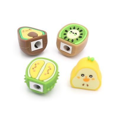 Detské strúhadlo / orezávatko na ceruzky alebo pastelky v tvare ovocia. gumové telo príjemné na dotyk priemer otvoru: 8 mm dizajny ovocia: Kiwi, Hruška, Avokádo a Durian Balenie obsahuje mix 24 ks, každý produkt je balený samostatne v krabičke.Cena je za 1 kus.