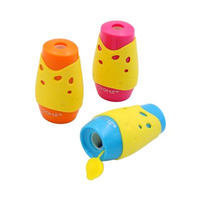 Struhadlo /orezávatko na ceruzky a pastelky s mäkkým povrchom, príjemným na dotyk. dva otvory 8 a 11 mm skryté pod záklopkou 3 farby vhodné do školy aj kancelárie Cena je za 1 kus.