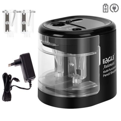 Automatické strúhadlo na ceruzky dvoch rozmerov 6-8 mm a 9-12 mm. Strúhadlo obsahuje odpadovú nádobu . Napájanie zo siete 230V, súčasou balenia je adaptér alebo na batérie - 4x AA 1,5V nie sú súčasťou balenia. Rozmer: 84x72x76 mm.