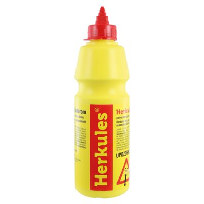 Univerzálne lepidlo pre domácnosť, školy, kanceláriu a domácu dielňu. Rozsah použitia: Herkules lepí papier, drevo, korok, kožu, drevovláknité materiály a ďalšie savé materiály. Zvlášť je vhodný na lepenie fotografií, zlepovanie dreveného nábytku, kožených výsteliek obuvi a pod. Je to výborné lepidlo pre modelárov.Neobsahuje rozpúšťadlá a je riediteľné vodou.