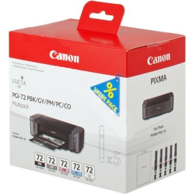 Cartridge Canon PGI-72, matná čierna, azúrová, purpurová, žltá, červená, päťbalenie, multipack, originál