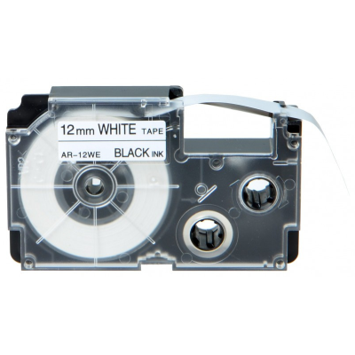 Kompatibilná páska Casio XR-12WE1, 8m, 12mm vo farbe čierna tlač / biely podklad ponúka spoľahlivý a cenovo výhodný spôsob tlače štítkov pre každodenné použitie.