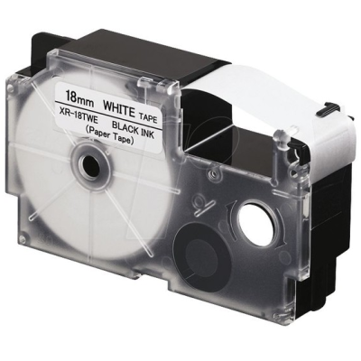 Kompatibilná páska Casio XR-18WE1, 8m, 18mm vo farbe čierna tlač / biely podklad ponúka spoľahlivý a cenovo výhodný spôsob tlače štítkov pre každodenné použitie.