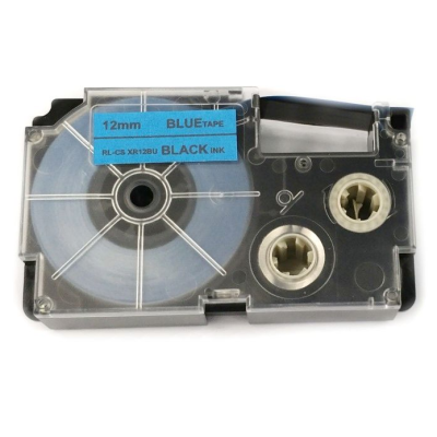Kompatibilná páska Casio XR-12BU1, 8m, 12mm vo farbe čierna tlač / modrý podklad ponúka spoľahlivý a cenovo výhodný spôsob tlače štítkov pre každodenné použitie.