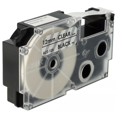 Kompatibilná páska Casio XR-12X1, 8m, 12mm vo farbe čierna tlač / priehľadný podklad ponúka spoľahlivý a cenovo výhodný spôsob tlače štítkov pre každodenné použitie.