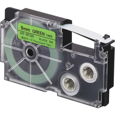 Kompatibilná páska Casio XR-9FGN, 8m, 9mm, fluorescent vo farbe čierna tlač / zelený podklad ponúka spoľahlivý a cenovo výhodný spôsob tlače štítkov pre každodenné použitie.