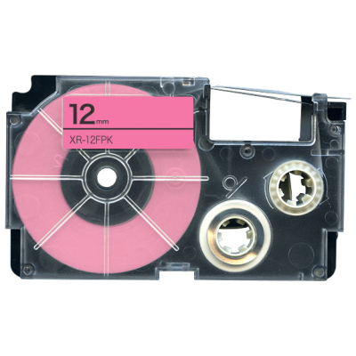 Prémiová páska Casio XR-12FPK, 8m, 12mm, fluorescent vo farbe čierna tlač / ružový podklad poskytuje vynikajúcu kvalitu tlače, zvýšenú odolnosť a profesionálny vzhľad pre náročné aplikácie.