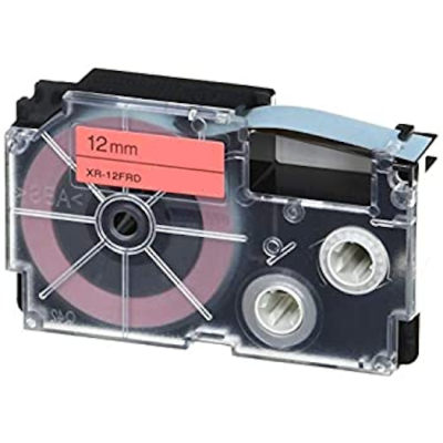 Prémiová páska Casio XR-12FRD, 8m, 12mm, fluorescent vo farbe čierna tlač / červený podklad poskytuje vynikajúcu kvalitu tlače, zvýšenú odolnosť a profesionálny vzhľad pre náročné aplikácie.