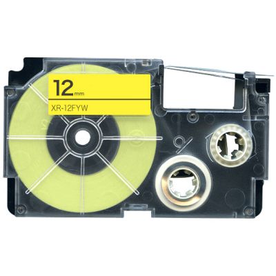 Prémiová páska Casio XR-12FYW, 8m, 12mm, fluorescent vo farbe čierna tlač / žltý podklad poskytuje vynikajúcu kvalitu tlače, zvýšenú odolnosť a profesionálny vzhľad pre náročné aplikácie.