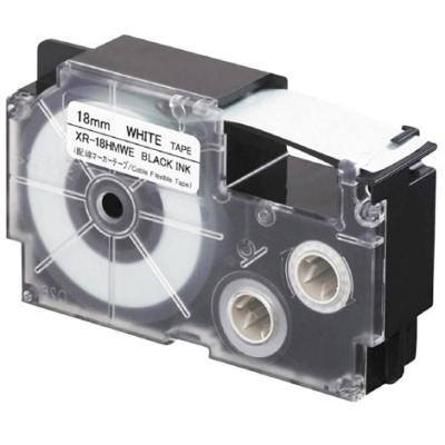 Kompatibilná páska Casio XR-18HMWE, 8m, 18mm, flexible vo farbe čierna tlač / biely podklad ponúka spoľahlivý a cenovo výhodný spôsob tlače štítkov pre každodenné použitie.