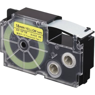 Kompatibilná páska Casio XR-18FYW, 8m, 18mm, fluorescent vo farbe čierna tlač / žltý podklad ponúka spoľahlivý a cenovo výhodný spôsob tlače štítkov pre každodenné použitie.