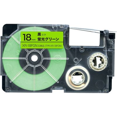 Kompatibilná páska Casio XR-18FGN, 8m, 18mm, fluorescent vo farbe čierna tlač / zelený podklad ponúka spoľahlivý a cenovo výhodný spôsob tlače štítkov pre každodenné použitie.