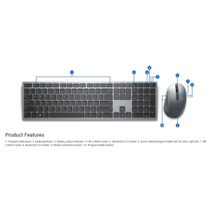 Bezdrôtová klávesnica a myš Dell Premier sú vyrobené tak, že majú jednu z najdlhších výdrží batérie a to až 36 mesiacov. Môžete si byť istý, že táto kombinácia klávesnice a myši bola dôkladne testovaná, aby bolo zabezpečené bezproblémové pripojenie k počítaču Dell. Klávesnica ponúka 128-bitové šifrovanie AES (Advanced Encryption Standard) chrániaci prenos dát medzi vašimi počítačmi a zariadeniami a poskytuje vám počas písania zabezpečené pripojenie.