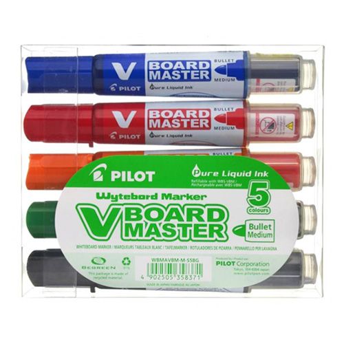Technická inovácia, V-BOARD MASTER sú popisovače na biele tabule s vymeniteľnou náplňou s tekutým atramentom. Nový atramentový systém ponúka okamžité písanie bez pretrepávania či pumpovanie, rovnako ako plynulý výdaj atramentu: zabudnime na popisovače, ktoré píšu čím ďalej tým menej, čím viac sa používajú. Budete nadšení intenzívnymi a žiarivými farbami V-BOARD MASTER. Táto rukoväť je súčasťou série Begreen, vyrobené z recyklovaného plastu. Spoločne môžeme veľa vecí zmeniť, a pomôcť tak chrániť surovinové zdroje našej planéty. Výrobou V-Board Master Popisovač z recyklovaného plastu znižuje Pilot uhlíkovú stopu pera v porovnaní s rovnakým perom vyrábaným bez využitia recyklovaného plastu. Tým to ale nekončí: Ak aspoň trikrát vymeníte náplň, vyrovnáte tak emisie oxidu uhličitého. Od výroby až do konca životnosti výrobku sa odhaduje, že nákup tohto pera Begreen a jeho trojnásobné doplnenie náhradnou náplňou zníži celkový vplyv pera na životné prostredie o -75%** v porovnaní s nákupom ďalších 3 nových pier. Aj tak malé gesto môže významne zmeniť náš boj proti zmene klímy!