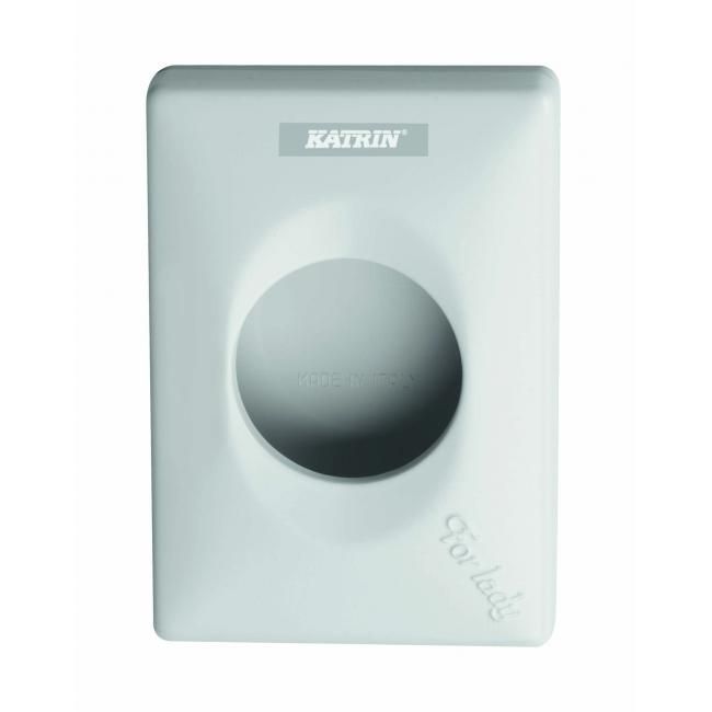 Zásobník z ABS plastu na dámske hygienické vložky s kapacitou 25 sáčkov. Rozmery zásobníka 102 × 148 × 29 mm.