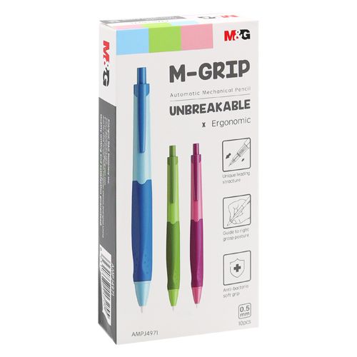 Mechanická ceruzka = pentelka od značky M&G, podkategória M-Grip. Pentelka sa predáva v troch farebných variantoch, akými sú ružová, zelená a modrá. Priemer tuhy je 0,5 mm.