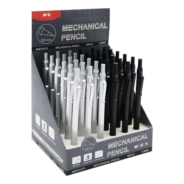 Pentelka s náhradnými náplňami v samotnom tele ceruzky, od značky M&G Tvrdosť grafitu je HB a priemer tuhy je 2 mm. Ceruzka funguje na princípe Multi-Point.