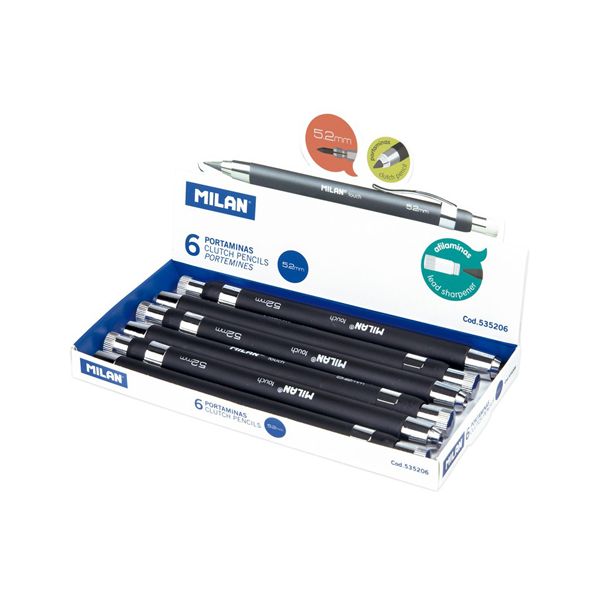 Jedinečná mechanická ceruzka MILAN s priemerom tuhy 5,2mm. S integrovaným strúhadlom, ktoré jednoducho vyberiete odskrutkovaním stláčacieho mechanismu. Hladké, guľaté telo v matnej čiernej farbe so striebornými doplnkami. Možnosť dokúpiť náhradné tuhy kód: 3802062.