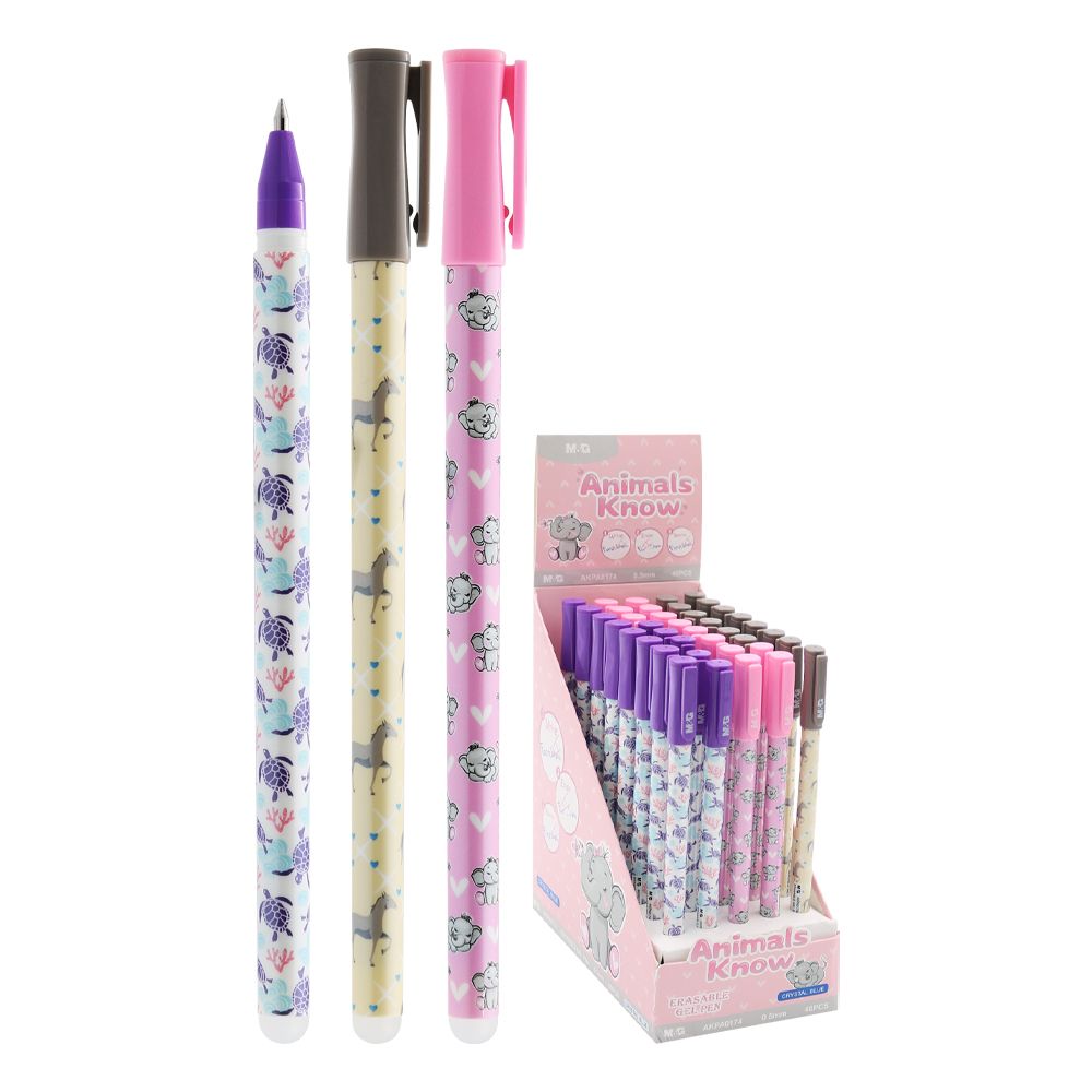 Roller gélový/gumovací M&G iErase Animals Know 0,5 mm, modrý