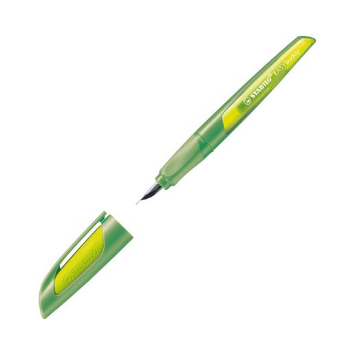 Ergonomické univerzálne plniace pero EASYbuddy lime/green M - pre ľavákov a pravákov, kvalitný hrot s irídiovou špičkou, opätovne naplniteľný štandardnými bombičkami, okienko pre kontrolu hladiny atramentu.