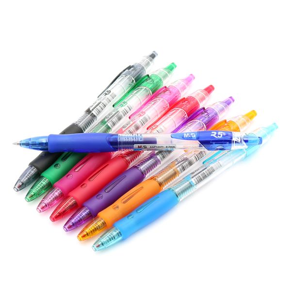 Gélové pero s transparentným plastovým telom a veľkoobjemovou náplňou.