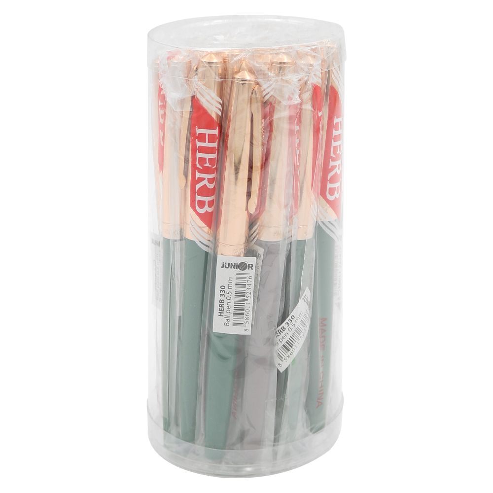 Guľôčkové pero s plastovým telom a ergonomicky tvarovaným gumovým úchopom. Priemer hrotu je 0.7 mm. Dodávané vo farbách: modrá, žltá, červená, biela. Náplň modrá. Jednorazová náplň.