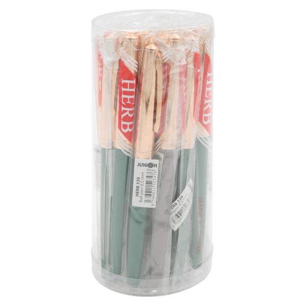 Jednorazové guličkové pero s transparentným čírym telom, so zakončením a uzáverom vo farbe náplne. Zelená farba a priemer 1,0 mm.
