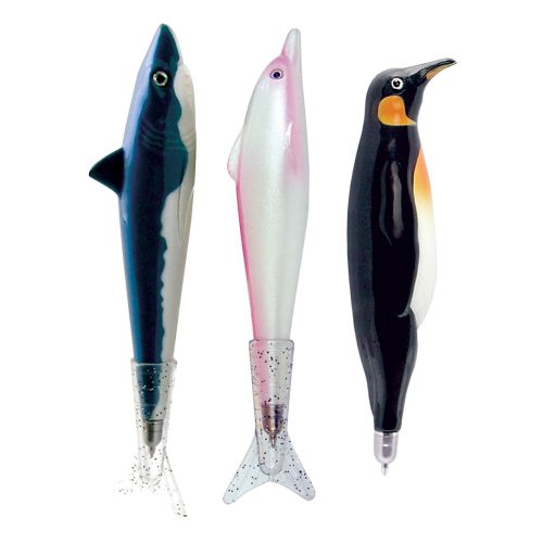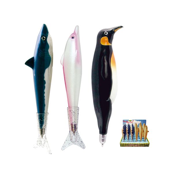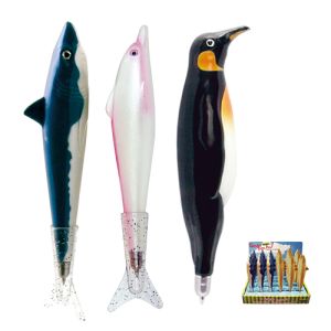 Guličkové pero dekoračné, s vymeniteľnou náplňou, vyrobené z kvalitného na dotyk príjemného plastu, dodávané v dizajnoch morských cicavcov.