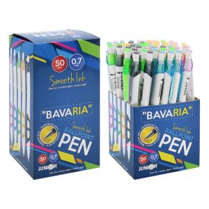Guľôčkové pero s plastovým telom a ergonomicky tvarovaným gumovým úchopom. Priemer hrotu je 0.7 mm. Dodávané vo farbách: modrá, žltá, červená, biela. Náplň modrá. Jednorazová náplň.