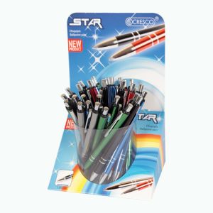 Guľôčkové pero s plastovým telom a ergonomicky tvarovaným gumovým úchopom. Priemer hrotu je 0.7 mm. Dodávané vo farbách: modrá, žltá, červená, biela. Náplň modrá. Jednorazová náplň.