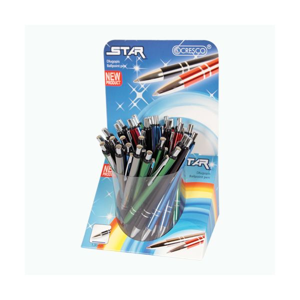 Jednoduché guľôčkové pero s trojhranným, priehľadným telom (dostupné v 4 farbách). čierny atrament, hladké písanie stopa (hrot) 0,7 mm nasadzovacie viečko vrúbkovaný úchop proti kĺzaniu pera náhradná náplň: jednorazová Balenie obsahuje 50 ks.Cena je za 1 kus.