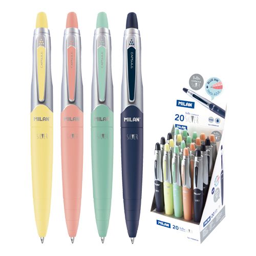 Pero guľôčkové MILAN Capsule Silver 1,0 mm - modré