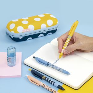 Guľôčkové pero s plastovým telom a ergonomicky tvarovaným gumovým úchopom. Priemer hrotu je 0.7 mm. Dodávané vo farbách: modrá, žltá, červená, biela. Náplň modrá. Jednorazová náplň.