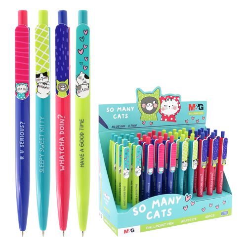 Pero guľôčkové M&G So Many Cats 0,7 mm, modré