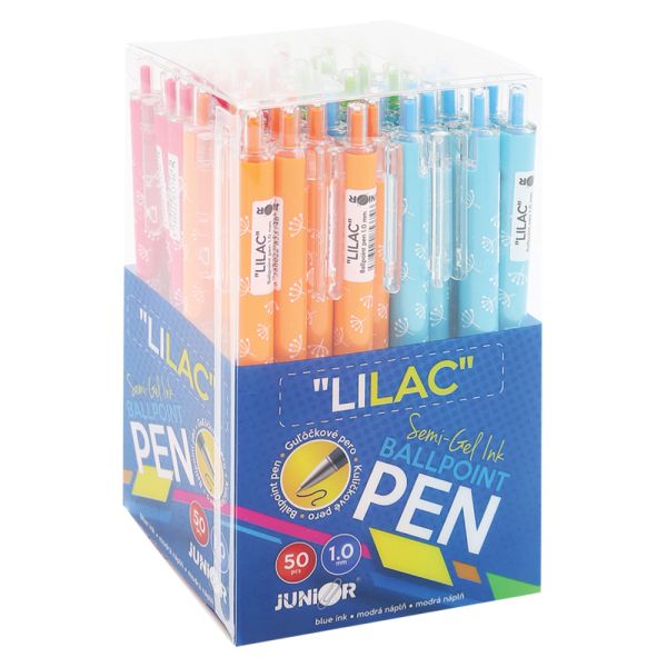 Guľôčkové pero značky Semi-Gel edícia LILAC. Táto edícia má štyri farebné prevedeniach tela. Farba tela sa nezhoduje s farbou atramentu. Náplň je modrej farby, ale dá sa vymeniť. Priemer gulôčky je približne 1,0 mm.