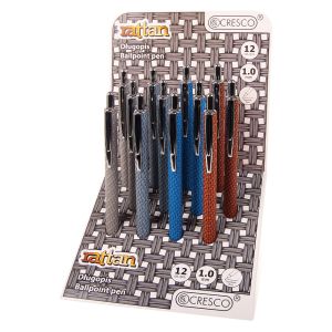 Guľôčkové pero s plastovým telom a ergonomicky tvarovaným gumovým úchopom. Priemer hrotu je 0.7 mm. Dodávané vo farbách: modrá, žltá, červená, biela. Náplň modrá. Jednorazová náplň.