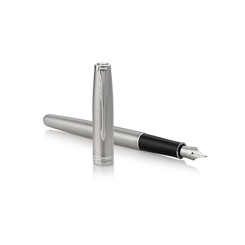Nadčasová elegancia modelu Sonnet, jeho vycibrený štýl aj rozmanité povrchové úpravy skvele nadväzujú na dizajnérsku tradíciu značky Parker. Sonnet je dokonalým zosobnením všetkého, čo PARKER vie najlepšie - majstrovské spracovanie hrotu z 18-karátového zlata, ideálne rozloženie hmotnosti pera aj starostlivé zostavenie jednotlivých, celkom 17 rôznych dielov. Modelová rada Sonnet je skutočne nadčasová - a zároveň vždy aktuálna. Telo a vrchnák z brúsenej nerez ocele. V kombinácii s doplnkami pokovovanými paládiom. Hrot z nerez ocele s krížovou rytinou.