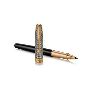 Nadčasová elegancia modelu Sonnet, jeho vycibrený štýl aj rozmanité povrchové úpravy skvele nadväzujú na dizajnérsku tradíciu značky Parker. Sonnet je dokonalým zosobnením všetkého, čo PARKER vie najlepšie - majstrovské spracovanie hrotu z 18-karátového zlata, ideálne rozloženie hmotnosti pera aj starostlivé zostavenie jednotlivých, celkom 17 rôznych dielov. Modelová rada Sonnet je skutočne nadčasová - a zároveň vždy aktuálna. Telo a vrchnák z mincového striebra pokryté ochranným lakom, so zdobenými rytinami vyplnenými čiernou živicou. V kombinácii s doplnkami pokovovanými 23-karátovým zlatom. Hrot z 18-karátového zlata s krížovou rytinou.