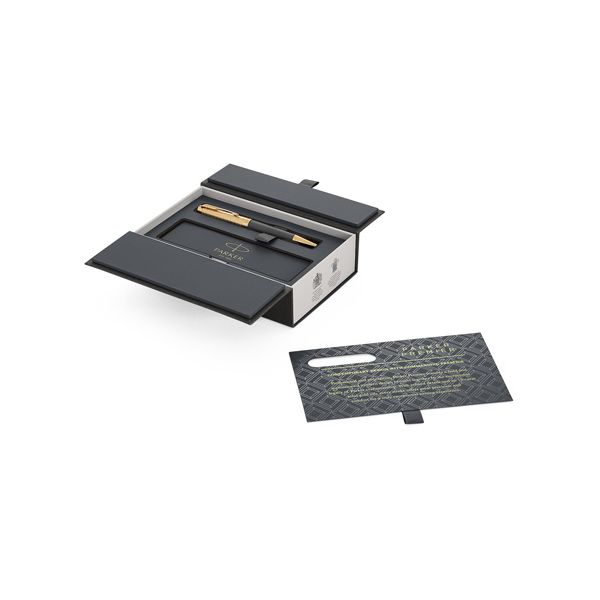 Roller Parker IM Writing Rituals Green GT má telo a vrchnák pokrytý saténovo metalickým farebným lakom. V kombinácii s doplnkami potiahnutými pomocou techniky PVD zlatou farbou. nasadzovacie viečko dodávané s čiernou náplňou balené v elegantnom darčekovom balení