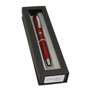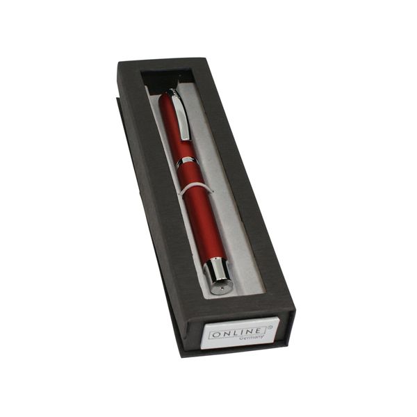 Dizajn Roller - Visio Classic Red, pre ľavákov a pravákov, ušľachtilý hliník, pre pohodlie pri písaní. Designový roller VISION od firmy ONLINE z matného brúseného hliníka v modernom dizajne presviedča svojou mimoriadnou charizmou. Príjemná akrylová rukoväť a ušľachtilý kovový klip zaručujú dlhotrvajúce potešenie z písania. Original ONLINE Rollerball Mine s šírkou čiary 0,7 zaručuje hladký a mäkký pocit aj pre tých najnáročnejších. Kvalitný dizajnér rollerball je vhodný pre ľavákov i pravákov a preukazuje spôsobilosť v kvalite, dizajne a trende.