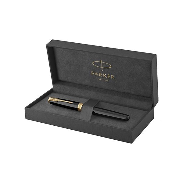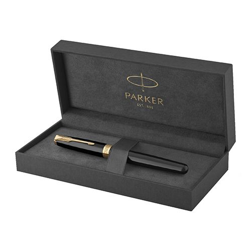 Nadčasová elegancia modelu Sonnet, jeho vycibrený štýl aj rozmanité povrchové úpravy skvele nadväzujú na dizajnérsku tradíciu značky Parker. Sonnet je dokonalým zosobnením všetkého, čo Parker vie najlepšie – majstrovského spracovania hrotov z 18-karátového zlata, ideálneho rozloženia hmotnosti pera i starostlivého zostavenia jednotlivých, celkom 17 rôznych dielov. Modelový rad Sonnet je skutočne nadčasový… a zároveň vždy aktuálny. Čierne lakované telo a viečko. V kombinácii s doplnkami pokovovanými zlatom. Plniace pero a roller s kovovým alebo živicovým úchopom. Nasadzovacie viečko. • Štandardná náplň Quink pre rollery, dodávané s čiernou náplňou.