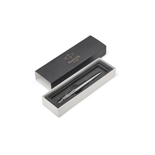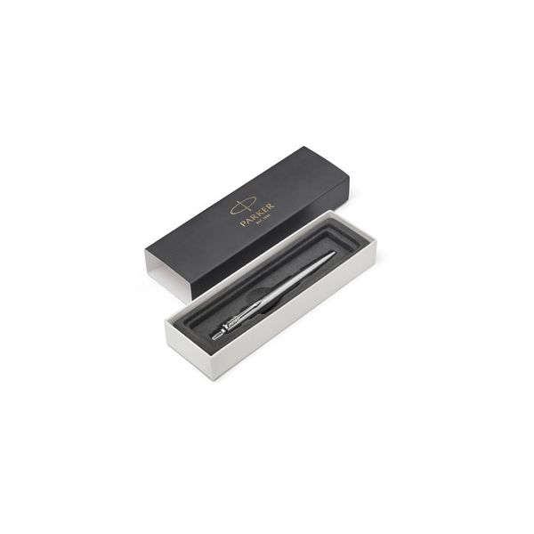 Parker Jotter je dizajnérskou klasikou a dôverne známou modelovou radou, oceňovaná hlavne pre svoju kvalitu, spoľahlivosť a priaznivý pomer ceny a výkonu. Ide o nadčasový model, ktorý aj vďaka širokej ponuke povrchových prevedení a praktickému, jednoduchému tvaru, patrí medzi najobľúbenejšie. Telo a vrchnák z brúsenej nerez ocele. V kombinácii s klipom pokovovaný chrómom, s leštenou úpravou. Hrot z nerez ocele. Guľôčkové pero. Stláčací mechanizmus. Dodávané s modro náplňou.