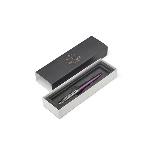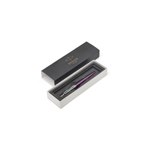Pero guľôčkové PARKER Jotter Victoria Violet CT. Parker Jotter je dizajnérskou klasikou a dôverne známym modelovým radom, oceňovaným predovšetkýn pre svoju kvalitu, spoľahlivosť a priaznivý pomer ceny a výkonu. Lakované telo z brúsenej nerez ocele a vrchná časť z brúsenej nerez ocele. V kombinácii s doplnkami z nerez ocele pokovovanými chrómom, s leštenou úpravou.