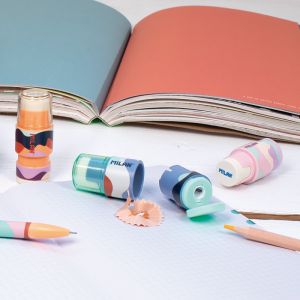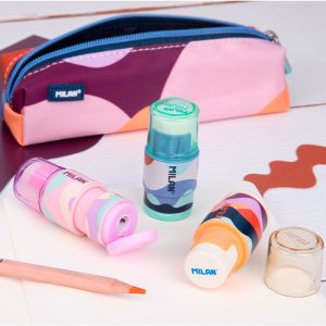 Obdĺžniková guma MILAN 445 z mäkkej syntetickej gumy. Môže byť použitá na gumovanie širokej škály ťahov grafitovej ceruzky zo všetkých druhov papiera. S detským dizajnom v rôznych farbách: biela, ružová, zelená.