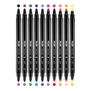Obojstranné fixy na vodnej báze - 10 ks fixiek a až 20 rôznych farieb. Priemer hrotu je 5 mm. Špička môže byť použitá pre kreslenie jemných liniek od 0.75 mm alebo silnejších liniek až do 3 mm.