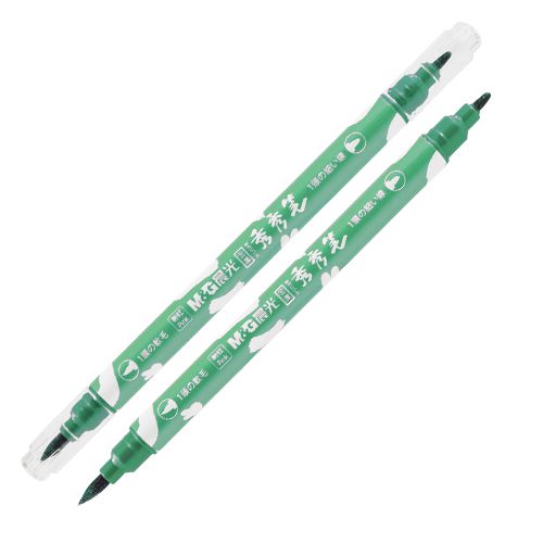Obojstranné kreatívne popisovače, ktorých hroty umožňujú jednoduché farbenie, kreslenie, skicovanie a tieňovanie. Štetcový hrot – šírka stopy 1 mm (pre detailné zvýraznenie riadkov). Guľatý hrot – šírka stopy 1mm. Vysoko pigmentovaný, dlhotrvajúci a rýchloschnúci atrament odolný voči rozmazaniu a vyblednutiu. Dĺžka popisovača 160 mm. Farba: svetlo zelená.