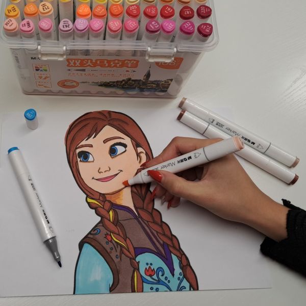 Sada obsahuje dvanásť farieb, ktoré sú na alkoholovej báze. Sú odolné voči rozmazaniu alebo aj vyblednutiu.